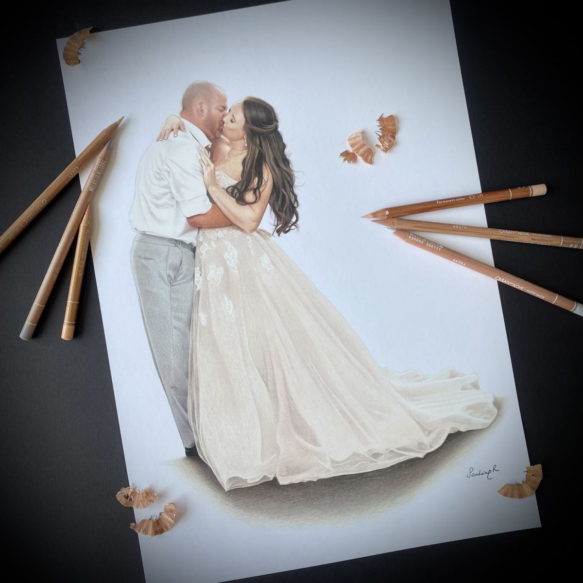 Today I work mainly with colored pencils, because they allow for an almost intimate kind of delicacy: layer by layer, the way memories are built. That essence that makes your companion unmistakably them.